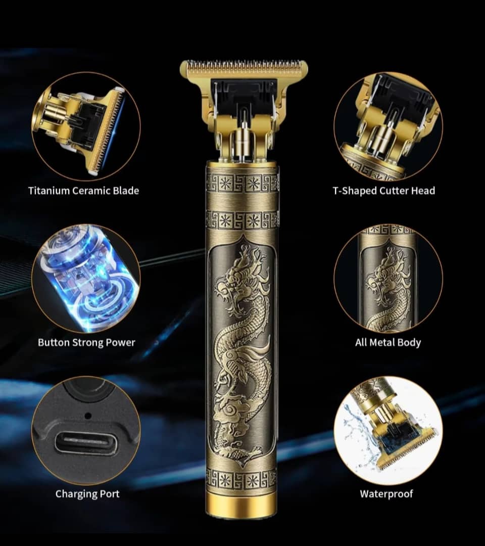 Découvrez la tondeuse de précision professionnelle, un outil alliant design raffiné et performance de coupe exceptionnelle. Son corps en métal gravé d’un dragon symbolise puissance et durabilité, pour une expérience de rasage incomparable.